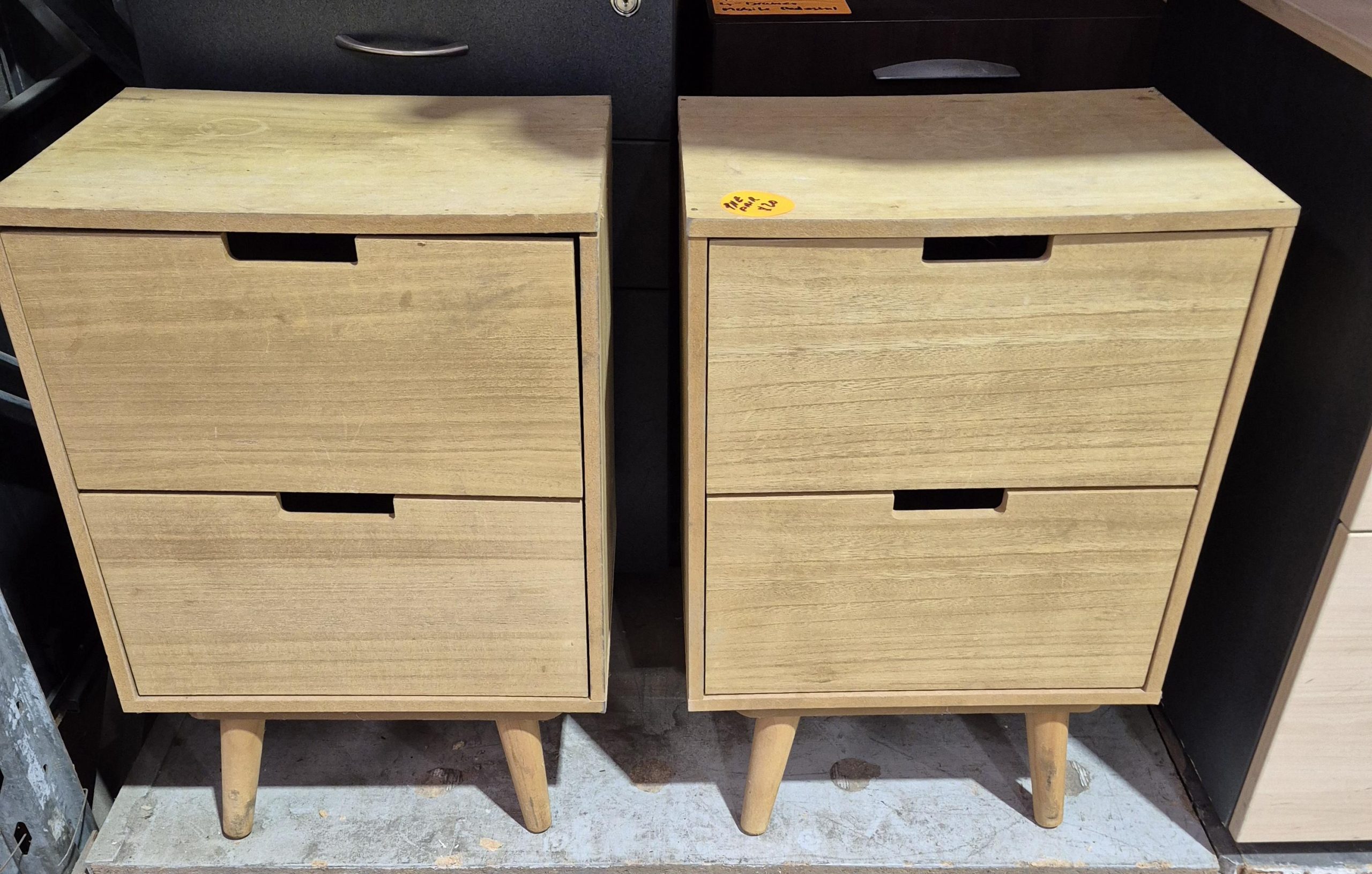 Lakes Used Office Furniture now has available 2 x bedside tables in a stained pine finish. You could use these 2 x bedside tables to store stationery and other personal items you need close to hand. The top surface is at a handy height to place items like; a lamp, a small printer, or other small office essential.